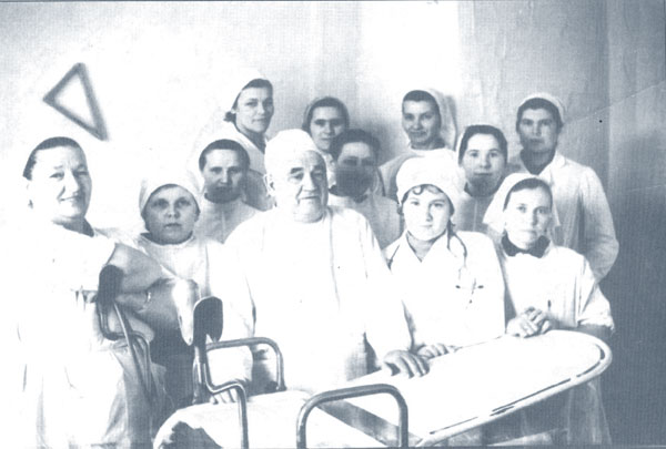 Коллектив Тугачинской больницы основан на бывшей закрытой больнице Тугачинского лагеря. В центре репрессированный врач Новотный (Наводный) Генрих Осипович. Слева его жена Чайкина Софья Тимофеевна (из числа вольнонаемных)