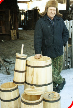 Макаренко Алексей Михайлович – деревенский умелец, своими руками собрал трактор и работает на нем в своем хозяйстве. А когда ушел на пенсию, то решил освоить бондарское мастерство, и у него это получилось.