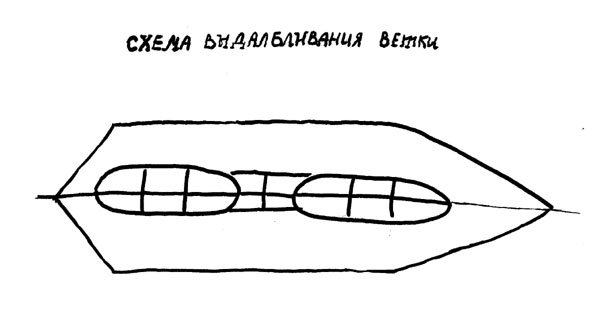 Схема выдалбливания лодки– ветки