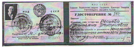 Далее Наталья Павловна пишет: «в то страшное время врач Репьёва осмелилась обратиться к начальнику Дальстроя К. А. Павлову с просьбой об улучшении рациона и медицинского обеспечения заключённых. И…добилась своего».
