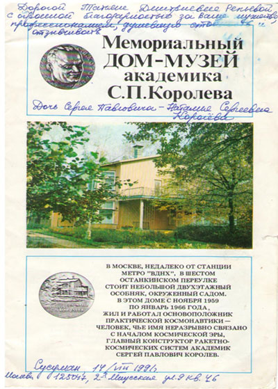 « Мой отец- С. П. Королёв» .) «Наше наследие». 2000. №54.