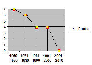 Цель исследовательской работы: анализ словаря имен учащихся Оракской основной школы 1960 - 2010 годов рождения, выявление традиционного подхода и новых тенденций в выборе имени, определение имен-лидеров и наиболее популярных имен. Методы исследования - анкетирование, исследование статическое количественное. Работа связана с историей, этнографией, расширяет связь с демографией. Основные результаты исследования: составлен именной словарь детей села Ораки 1960 - 2010 годов рождения, выявлены имена-лидеры за 50 лет. Руководителем моей работы является Инна Владимировна Кукарцева. Она помогла определить последовательность выполнения работы, выбрать основные источники, разобраться с документами школы и контролировала мою деятельность.