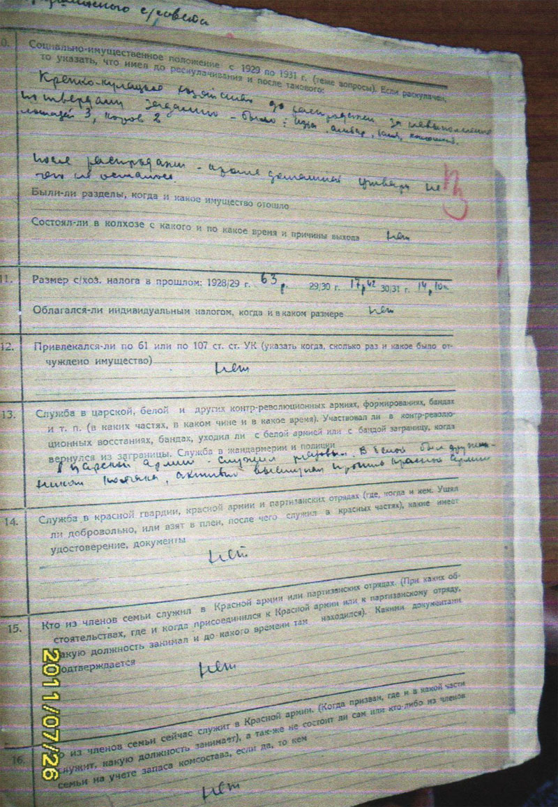 12 ноября 1930г. избирательных прав лишена вся семья. Сосновский А.А сбежал с