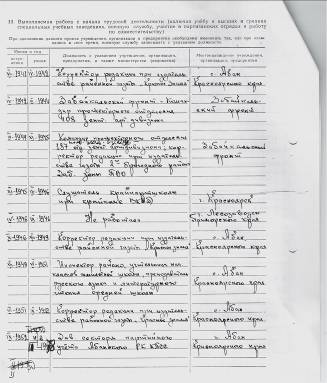 Прусакова Лидия Устиновна в книге «Никто не забыт» упомянута под девичьей фамилией Орлова. В Архиве РОНО храниться документ «Личный листок по учету кадров» Лидии Устиновны, где указано, что имея среднее образование, она работала в Абанской средней школе.