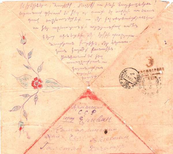 Даже в редких военных треугольничках писем он рисовал цветущую ветку родного сада. Я удивляюсь разносторонним талантам своего прадеда: он пишет стихи, он рисует, сохраняя традиции армянской национальной живописи. Кто научил этого деревенского мальчика всему этому? Нет ответа. Бабушка уже не помнит, да и за бытовыми жизненными проблемами, мы часто не видим какими талантливыми, необычными могут быть близкие нам люди. Ведь мы к ним просто привыкли!