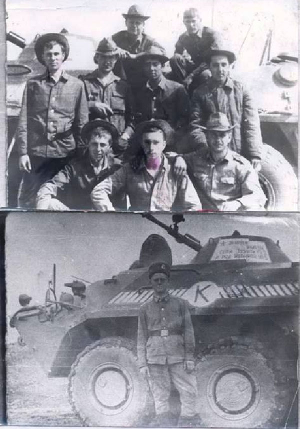 2 фото – у военной машины БТР стоит Сережа – рядовой пулеметчик.