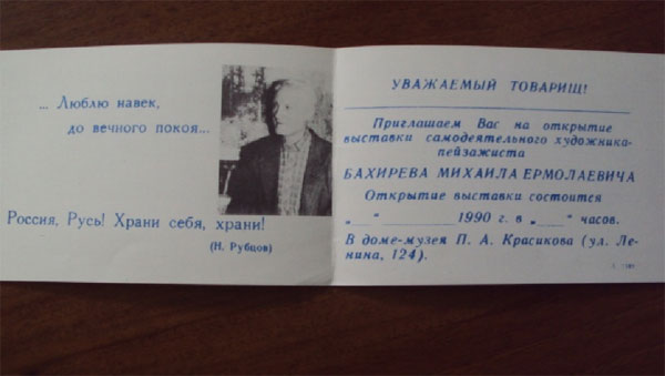 Приглашение на выставку М.Е.Бахирева