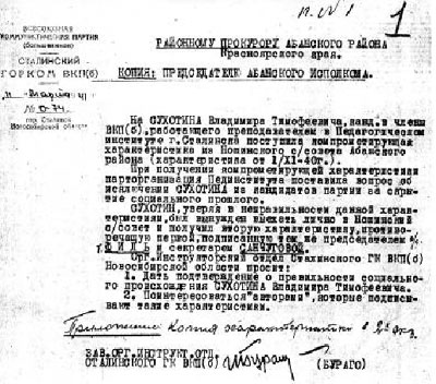 Горкома так: «… хозяйство родителей Сухотина подвергалось в 1930году