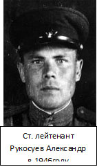 Вывод: Присвоения воинского звания «Старший лейтенант» достоин». В этом звании Александр Дмитриевич Рукосуев был уволен в запас 14 марта 1946 года. Награждён медалями: «За победу над Германией», «За победу над Японией»