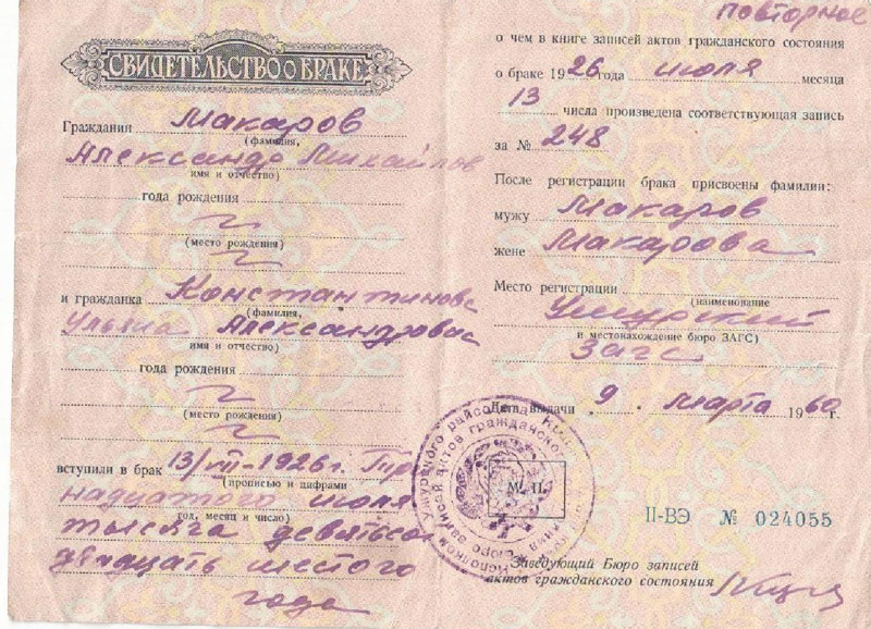 Заявление дочери Надежды Александровны Макаровой о выдаче повторного