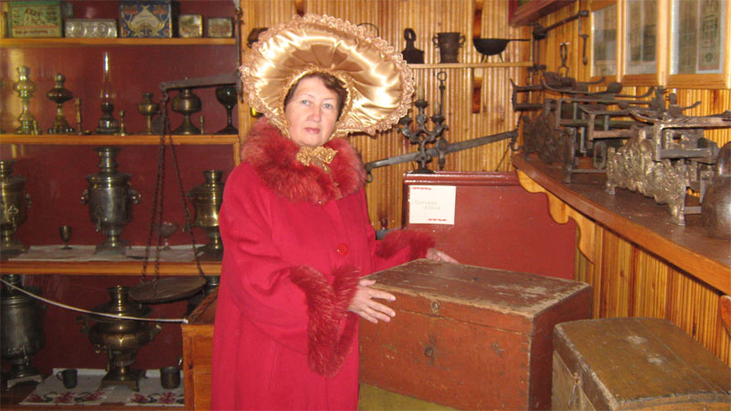 Татьяна Степановна Коновалова-Кузьмина с сундучком прадеда Коновалова Александра