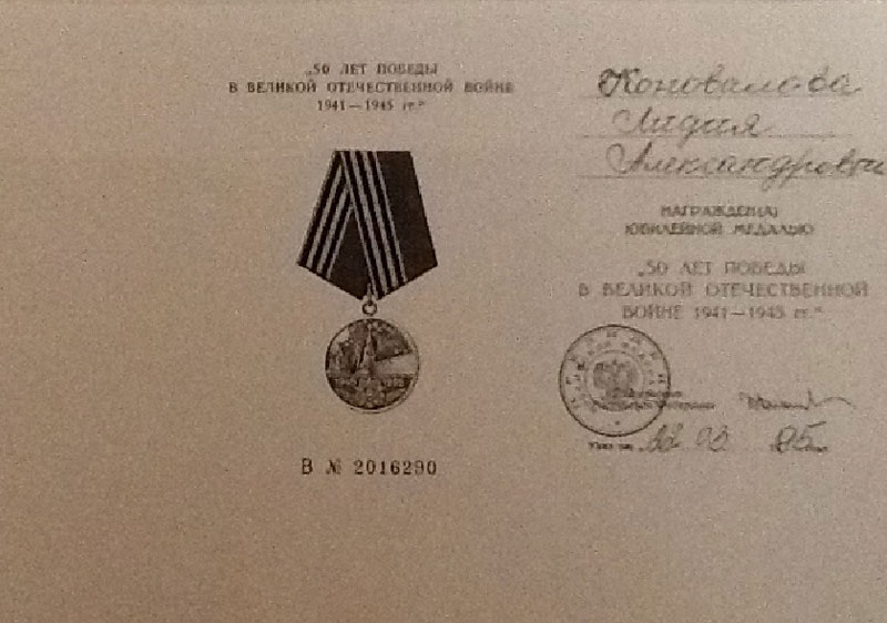 Копия удостоверения к медали «50 лет Победы в ВОВ»