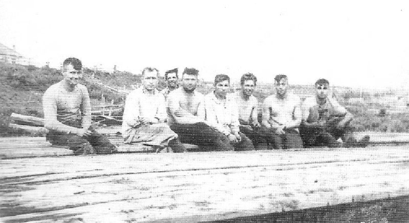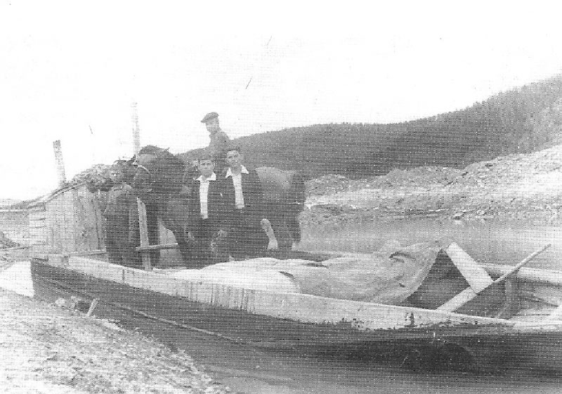 Команда илимки: Г. Козулин, В. Попов, П. Кузнецов, В. Сальников. Река Енашимо.