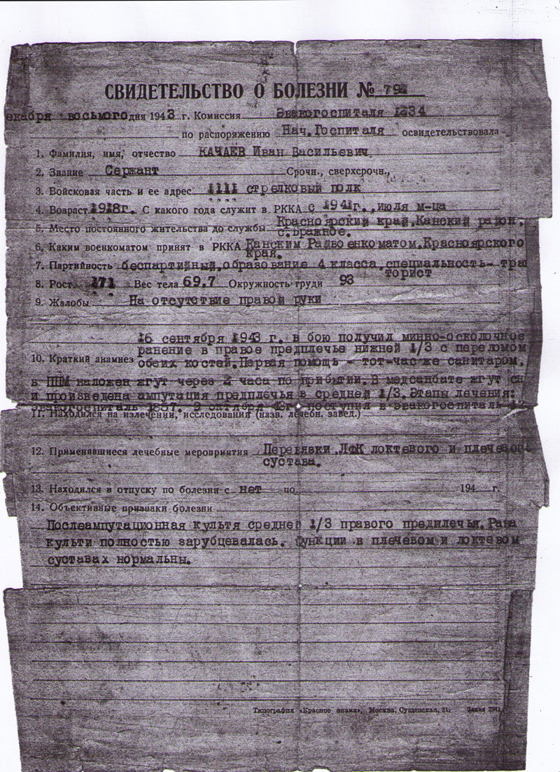 (Приложения №3) Свидетельство о фронтовом ранении.