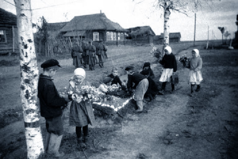 « Когда началась война, в 1941осенью отец ушел на войну, тогда я пошла в 1 класс, осень была сырая, хмурая, казалось природе тоже не нравилось то ,что происходит. В школе хорошо топили, было тепло, я любила ходить в школу. В школе была одна книга на весь класс. Первый год еще давали тетради. Во 2-м классе из сельсовета дали старые бумаги, писали сажей, зеленкой, свеклу пробовали вместо чернил, но она быстро засыхала, сажа тоже долго не держалась, и на следующий день снова писали на тех, же листах. В 3 классе было несколько учебников, у ребят от старших в семье. Первые два класса я ходила с тряпочной сумкой, которую сшила мама, а потом мой младший брат, который тоже без дела не сидел, смастерил мне деревянный портфель. Учителя были хорошие, но каждым годом становилось тяжелее. Мама растила нас одна, а нас было четверо, младшая сестра умерла в 1944г. Была корова, куры, но ни молока, ни яиц не видели, все нужно было сдать в качестве продовольственного налога. Самое страшное было, когда немец подошел к Москве. Обязали спать одетыми с вещмешками, каждую ночь приходили, проверяли, спим мы одетые или нет, чтобы по тревоге могли уйти в лес, это длилось неделю. Дом был большой, соседи приходили в наш дом на вечерку, вязали, пряли, приносили по ложке керосина, чтобы жечь лампу. Хлеба не было. Весной, лопали гнилую картошку, которую толкли в ступе, пекли лепешки, ели, потом переходили на траву, пучки, медуницу, крапиву, лебеда была нашим «спасителем»- самая вкусная. С той поры я не люблю и ни ем щи из крапивы, все это напоминает то время. Чай пили заваренный травой. Вместо сахара иногда была сушеная сахарная свекла, но её тоже надо было сдавать. Отец погиб на территории Германии 26.01. 1945. Было тяжело, приходила помощь, давали солдатские ботинки, за погибшего отца пенсия на 3-х детей 38 руб. Мама работала в колхозе. Я доила корову, потому что мама рано уходила на работу доила с 8 лет, вязала носки, чулки, рукавицы соседям, за работу давали два вареных яйца. Обувь заменяли лапти. Для фронта сушили картошку ,10 кг каждому двору нужно было сдать. Училась в школе до 5 класса. В школе на всех были лыжи, ходили каждую зиму, физкультуру любили больше всего. Во время войны для стирки варили щелок, руки от него не заживали, мыла не было, а моя задача была стирка. Мама в 1946г. заставила бросить учебу, идти работать в колхоз. Мне было 11 лет. Зимой собирали по дворам золу, чтобы посыпать поля вместо удобрений. Парни на подводах, девчонки ведрами. Летом на покосе собирали граблями сено, пропалывали пшеницу, рожь, в ручную. Потом стало немного легче, потому что мы росли. Но учится уже не пришлось.