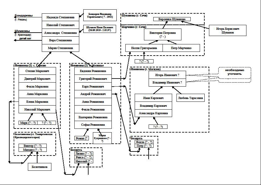 Предварительно я собрала уже имеющиеся сведения о моей родословной у своих бабушек Веры Дмитриевны Злобиной-Колосковой (г. Красноярск) и Лидии Васильевны Андриановой-Михно (с. Копьёво, Хакасия). Последняя согласилась также, наряду с мамой, помочь мне в подготовке поисковой работы к конкурсу.
