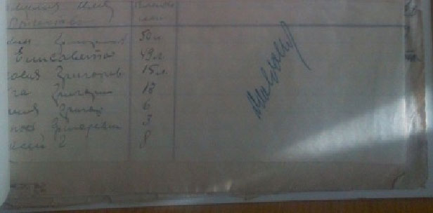 Список кулацкой семьи (прадед, прабабушка и пятеро детей).