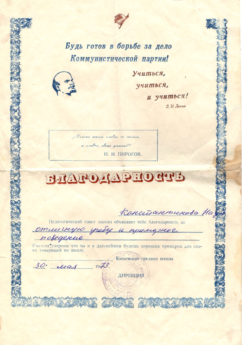 Внизу – я, Александр, выше – наша семья. Это благодарность школы моей маме