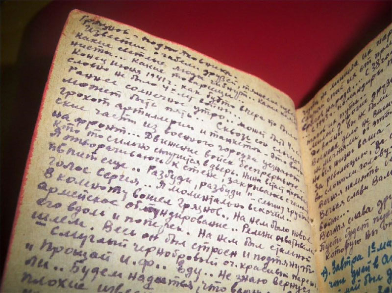 В дневнике также присутствуют подклеенные вырезки из газет «Правда», «Красная