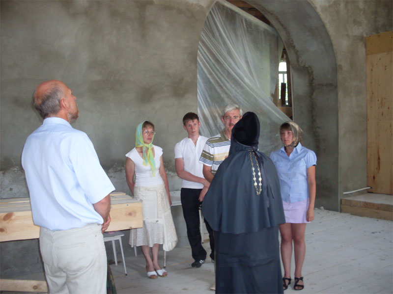 «Осенью поставили кочегарку и провели отопление. Зима была сильно холодной, но мы без дела не сидели. До нового года успели покрыть крышу храма. Обшили 2 купола на алтаре и сделали шпиль. Два малых креста сделали под золото. Погодные условия позволили продолжить работы только 22 мая 2008 года», - рассказывает Топалович. Основные работы закончили летом 2009 года. 9