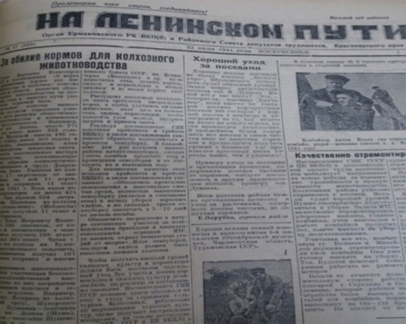 На страницах газеты «На Ленинском пути» Ермаковского района за 1941 год мы читали о жизни советских людей в районе, выбирали материал по Саянску и колхозу «Память Ленина». Вот какой у нас получился рассказ.