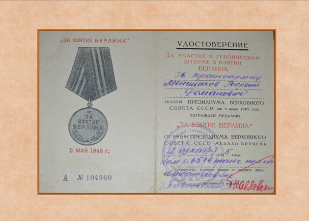 Воевал геройски. Об этом говорят его награды. Два Ордена Славы, Орден Отечественной войны I степени, медали «За освобождение Варшавы», «За взятие Берлина», «За победу над Германией в Великой Отечественной войне 1941-1945 гг.». Вот еще один интересный и необычный факт из фронтовой судьбы Георгия Романовича: медалью «За отвагу» он был награжден 26 сентября 1944 года. Но так ее не получил, время было такое: то документы запоздали, то часть перевели, то ранение солдат получил… Медаль разыскала адресата только в 1993 году, спустя 8 лет после смерти Георгия Романовича. Получала награду в Канском военкомате дочь Катя.