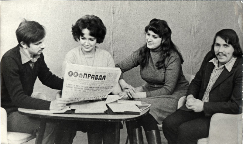 Комсомольцы студии ТВ 1980 г. Молодой специалист очень старательно работал над сюжетами.