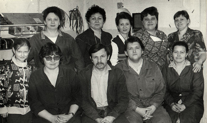 Тощев А. И. – директор типографии с коллективом. 1992 г.