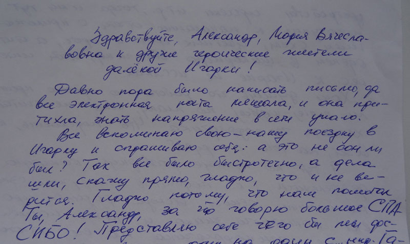 Знакомству, первой встречи, духовной близости, дружбе, не смотря на огромное расстояние Санкт-Петербург-Игарка, очевидно были предопределены судьбой.