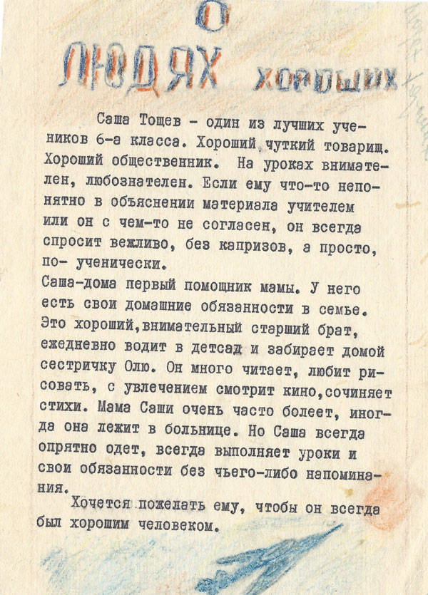 Тетрадь по чистописанию Александра Тощева. 1966 г.