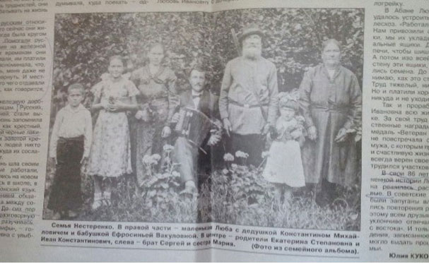 Фото семьи Нестеренко из районной газеты «Красное Знамя» 28 октября 2016г