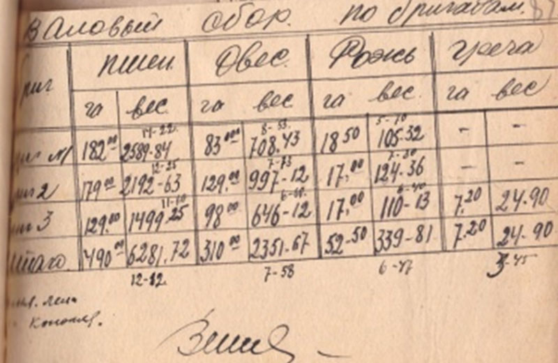 Уделяли должное внимание соревнованиям в бригадах, назывались имена передовиков: «пятисотниц», стахановцев, в расходных статьях видна строка «премирование». Нам было непонятно звания «пятисотниц», Мария Ивановна Солдатова растолковала: «Из травы осоки старухи и ребятишки вязали жгуты для перевязки снопов (перевясла). Их раскладывали по рядам скошенной жнейкой пшеницы. Стахановка вязала снопы, а ставить в суслоны должен был помощник. Многие бабы навязывали не 500, а дотягивали до 1000. Они были примером и все остальные должны были тянуться по увеличенным нормам, по времени». Выигрывали ударники труда и материально: «Протокол заседания тройки при Ермаковском РИКе по утверждению распределения доходов урожая 1933 года составлен в присутствии: директора Шушенского МТС Ширяева, инструктора МТС Шикалёва.