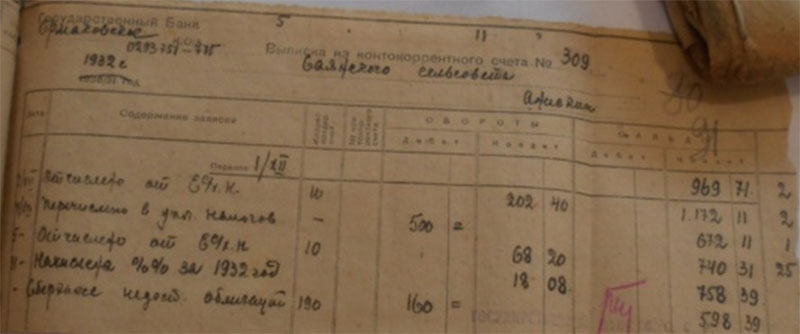Как же сработали колхозники в год начинания? В документе мы увидели наличие 12 коров, 124 овцы (с ягнятами), 3 свиней. Рассматривая годовой бухгалтерский отчет 1931-45 года колхоза «Память Ленина», мы оценили результат, как неудовлетворительный, почему? Доходная часть сложилась так: от полеводства 3751 рубль, луговодства 1376, огородничества 164, животноводства 391 – итого 5 682 рубля; расходная составила: на хозяйственные расходы 1839, на административно-управленческие 250, на страхование имущества 200, на с\х налоги и другие сборы 300, % расходов по кредитам 100, прочие 100 = 2 089 рублей. На этот счёт Тамара Дырнаева нам спела частушку того времени: