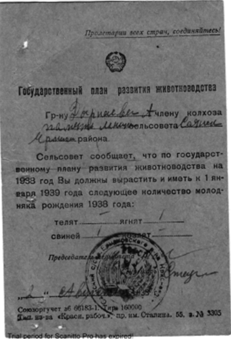 Цель: исследовать путь создания колхоза с позиции последствий для государства и социальных групп жителей Саянска.