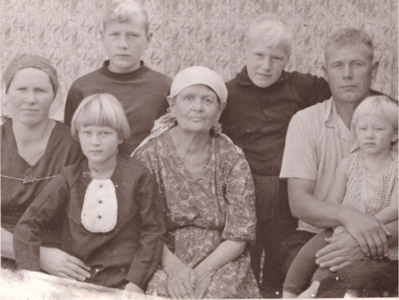 семья Пиневского Александра Ивановича: жена Валентина, дочь Рая, мама Анна Спиридоновна, сам с дочкой, сыновья Вася и Ваня.