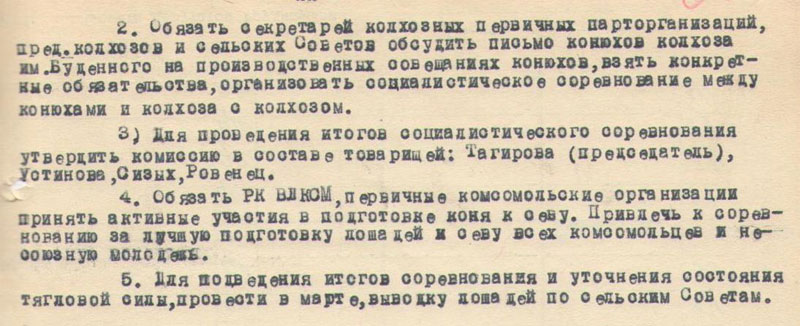 Из документа видно, что между колхозами было организовано социалистическое соревнование. Определялись лучшие работники, лучшие колхозы, лучшие председатели колхозов. С них брали пример все остальные.
