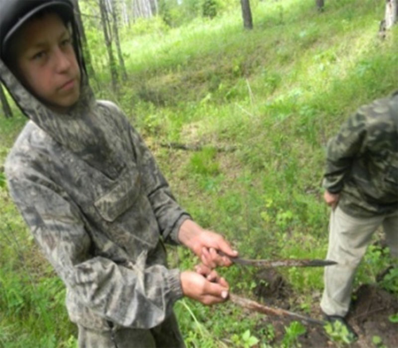 Далее наш путь лежал через лес к предполагаемому месту населенного пункта. Первое, что нам встретилось на пути, - это огромные углубления в земле. Они скрывались за высокими насыпями земли. Длина углублений доходила до 15 метров, ширина - 7-10 метров. Стало понятно, что это и есть те огромные подвалы, в которых хранили в зимний период овощи, заготавливаемые на полях Марьиного Клина для всего Тугачинского лагеря. От времени они, конечно же, обвалились, укрыв под землей множество объектов труда заключенных людей.