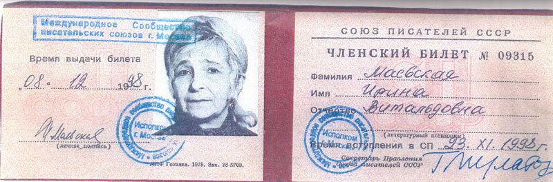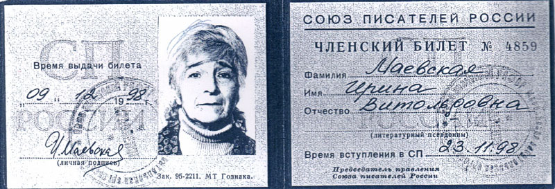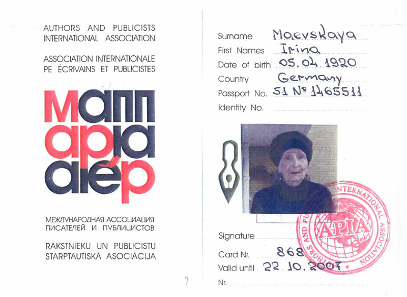 Литератор, писательница и член "Мемориала". Ирина Витольдовна Маевская скончалась 8 октября 2008 года в г.Оснабрюке в Германии на 89-м году жизни.