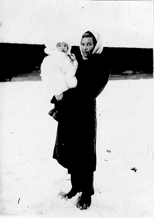 Eine ungeheure Schwäche ergriff Besitz von ihr, die Beine gaben nach, und sie sank taumelnd, keinen Halt findend, am sandigen Ufer zusammen. Hier wurde sie von der Hauswirtin, die über ihr langes Fortbleiben beunruhigt gewesen war, gefunden. Sie brachte sie nach Hause, gab ihr heißen Tee zu trinken und deckte sie mit ihrer Decke zu. Im Morgengrauen setzten die Wehen ein. Die Hauswirtin brachte sie ans Ufer, setzte sie ins Boot und lieferte sie, an einer Schnur festgebunden, innerhalb einer Stunde in Turuchansk ab.