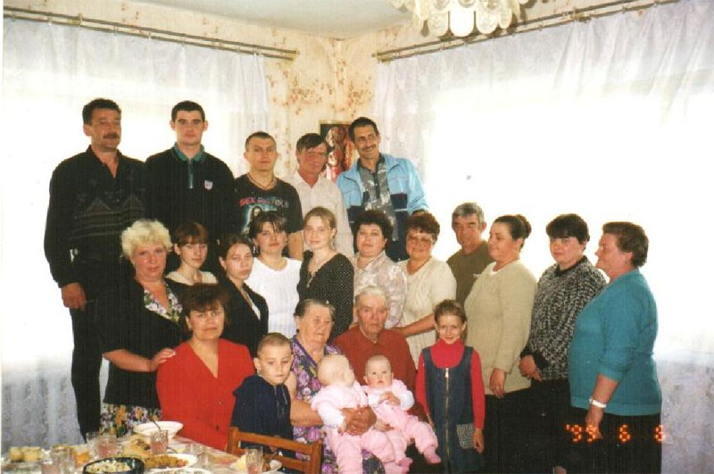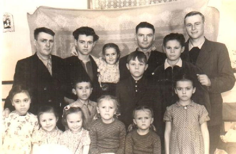 „1954 schlug Mama vor in die Sowchose umzuziehen. Sie überzeugte uns davon, dass das Leben dort leichter wäre. Die Baracke, in der wir wohnten, bestand aus einem 12 Quadratmeter großen Zimmer und einer Küche von 4 Quadratmetern Größe. Hier lebten alle Kinder, Enkel und ich mit meiner Familie; Lidia und ich hatten 7 Kinder.