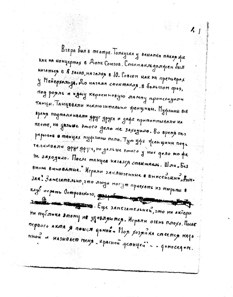 Sie verbannten ihn in die Stadt Jenisejsk. Und die Stepanowa, die zu der Zeit bereits ein großer Star am MChAT war, bemühte sich vor den verantwortlichen Mitarbeitern des ZK und des KGB um sein Schicksal. Und sie schrieb und schrieb und schrieb einen Brief nach dem anderen.