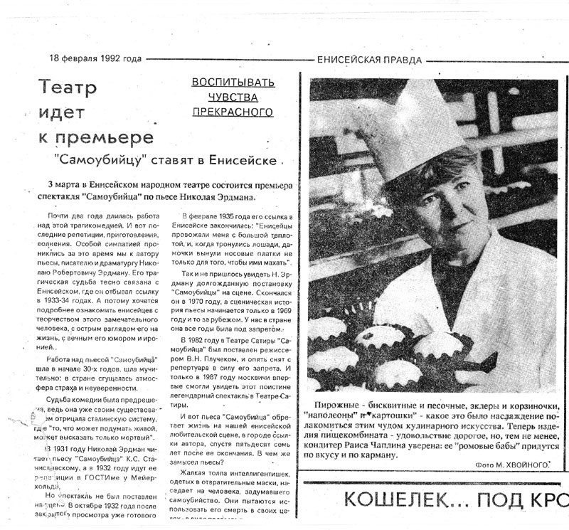 Zeitung „Jenisejsker Wahrheit“ vom 18.02.1992