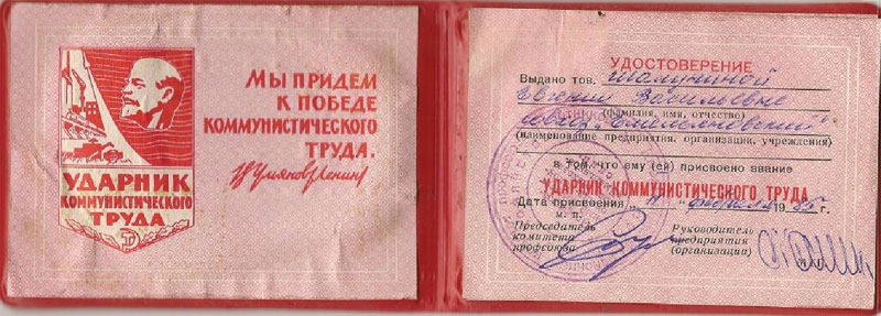 Am 11. Februar 1985 erhielt sie den Titel „Stoßarbeiterin der kommunistischen Arbeit“ zugesprochen (Anhang 10).