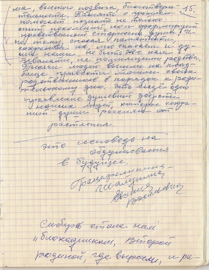 „ … Sibirien wurde für uns „Blokadniks“ zur zweiten Heimat, in der wir aufwuchsen, arbeiteten, Familien gründeten, Kinder, Enkel und Urenkel großzogen. Danke an alle, die uns in den schweren Minuten unterstützt haben – eine tiefe Verbeugung vor ihnen!!!“