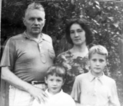 A. Stilmark: Ja. Das war in der Verbannung bei Krasnojarsk, im Dorf Maklakowo, Jenisseisker Bezirk. Heute heißt das einstige Dorf Maklakowo Lessosibirsk und ist eine Stadt. 1952 kam meine Mutter dorthin. Sie studierte, befand sich in der Aspirantur und war in der Gegend auf einer Folklore-Expedition. Dort lernte sie einen Verbannten kennen. Und wegen ihrer Beziehung zu ihm verjagte man sie aus der Aspirantur. Bis 1956 lebten wir dort, dann erkrankte ich sehr schwer an Lamblien-Ruhr, einer sehr schwerwiegenden Krankheit. Man brachte mich schnellstens zur Behandlung nach Moskau zur „Akrichin“-Fabrik. Sie fuhren ohne jede Erlaubnis, es gab noch keinerlei Rehabilitationen, und sie gingen ein gehöriges Risiko ein, aber sonst wäre ich einfach gestorben. Doch in Moskau wurde die Angelegenheit mit Gottes Hilfe nach und nach gelöst. Wir wohnten beim ältesten Bruder Feliks, der als Biologe tätig war, in einem kleinen Kellerzimmer in der Fuhrman-Gasse. Die Miliz schaute dort wegen des Vaters vorbei, aber mit Gottes Hilfe ging dann doch alles gut aus.