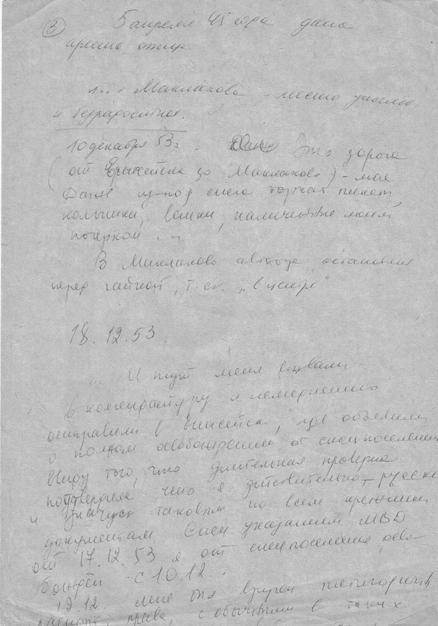 Das Karussell der Gefängniszellen fing an sich zu drehen, sie wechselten einander ab, und nachdem er fünf Jahre verbüßt hatte, schickten sie ihn in die Verbannung – ins Norillag des Sibuloner Systems, Region Krasnojarsk (sibirische Lager mit besonderer Bestimmung).