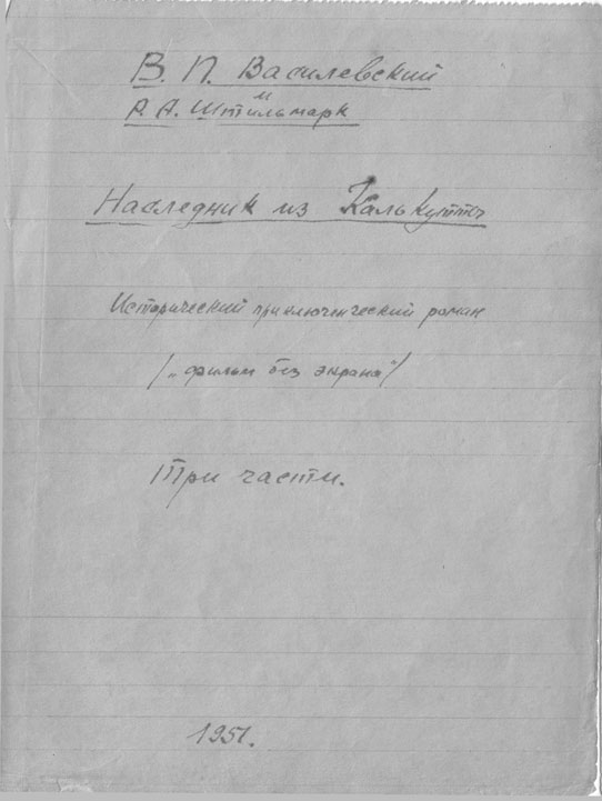 Wassilewskij frohlockt. Aber nachdem er von seinen Freunden den Rat erhalten hatte – „nicht in der Eigenschaft als Einzelautor in Erscheinung zu treten („du verstehst es nicht, mein Freund, dein Autorendasein durchzuhalten“, - sagten ihm seine Ratgeber. Und so brachte W.P. auf dem Umschlag des „Erben“ den Namen R. Stilmark ein“.
