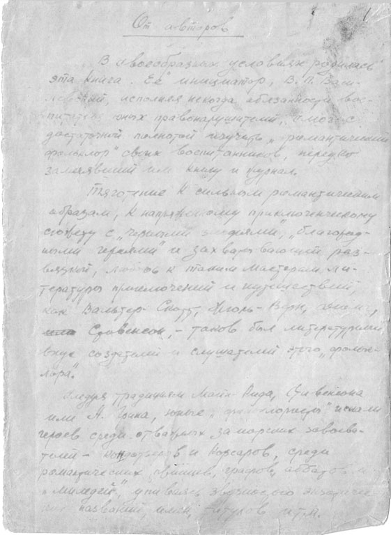 So standen also in den ersten beiden Ausgaben zwei Nachnamen – Stilmark und Wassiljewskij. Die dritte Auflage kam dann vom „Detgis“-Verlag nur mit Stilmarks Familiennamen heraus. Der Verlag, nicht der Vater, brachte Wassiljewskij vor Gericht. Und das Gericht entschied, dass Stilmark der alleinige Autor war, das Honorar jedoch für jeden zur Hälfte gezahlt werden müsse, weil Wassiljewskij derjenige war, der die Bedingungen für das Schreiben des Romans geschaffen hatte. Logisch. Weil er die tatsächlichen Voraussetzungen geschaffen hatte. Sonst hätte der Vater nämlich Holz sägen müssen, aber so setzte Wassiljewskij den Vater ins Badehaus, wo es eine Petroleumfunzel gab; dort bekam er ein bescheidenes Essen gebracht – man kann wohl sagen, dass die Bedingungen gemäß Häftlingsverständnis verblüffend waren. Der Roman wurde geschrieben, und zwar in der lächerlichen Zeit von einem Jahr.