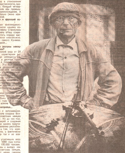 — Die Alteingesessenen, die sich gemeinsam mit den Deutschen auch noch an den «Aufenthalt» erinnern, begrüßen die Wiederherstellung der Republik. Na, und diejenigen, die damals aufgrund des stalinistischen Ukas in die Häuser der Repressionsopfer eingezogen sind, fürchten sich natürlich, dass die zurückkommenden Hausherren die Rückgabe ihrer Behausungen fordern. Gerade bei diesen («misstrauischen») Bevölkerungsschichten fanden die örtlichen Partei-Funktionäre Unterstützung, als sie die «Protest-Kampagne» gegen die Wiederherstellung der deutschen Republik in ihrer Domäne organisierten. Eine derartige Position ist leicht zu verstehen — in der neuen administrativen Einheit wird es vor allem eine neue Leitung geben. Daher der wütende Widerstand des Alten, der eindeutig seine Unterstützung in Moskau fand, wo, meiner Ansicht nach, eine ganz bestimmte Verbindung verfolgt wird, das Ineinanderfügen der Parteikreise mit den russischen Nationalisten des «Pamjatnik»-Typus. Zumindest geht es nicht ohnedem. Um aus ihnen eine soziale Basis in der Person eines bestimmten Teils der Ortsbevölkerung herauszuschlagen, rufen wir Interessenten dazu auf, ins Wolgagebiet zurückzukehren und ihre Ansprüche auf ihre alten Häuser geltend zu machen. Dies wird dazu beitragen, Spannungen abzubauen.