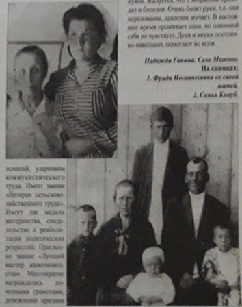 In der Ortschaft Meschowo trafen einige verfolgte Familien deutscher Nationalität ein. Unter ihnen befand sich auch die vierköpfige Familie Knaub – die Mutter mit ihren drei Kindern. Die älteste Tochter Olga war damals 15 Jahre alt, Viktor 13; Frieda war die Jüngste.